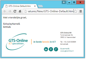 Wij hebben dit meegenomen in het PowerShell script waarmee de handtekening wordt aangemaakt: