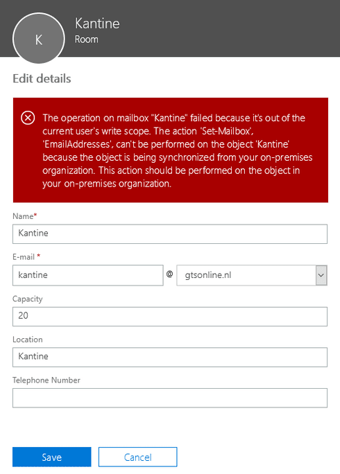 Fout bij het wijzigen van een gesynchroniseerde Shared Mailbox